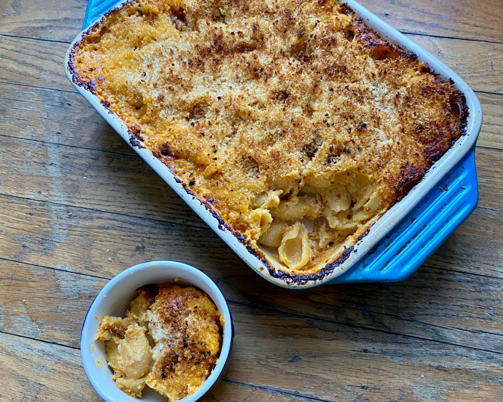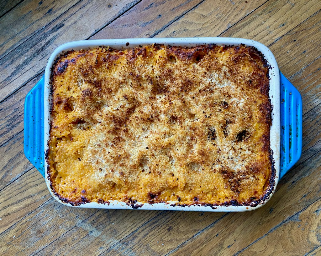 I didn’t want to use pork cracklings, and I am all out of black sesame seeds. However, I was intrigued by his use of roast squash in the cheese sauce. I used Chef Lee’s recipe with a few tweaks, and oh my gourd, it was pasta-ble to make grate mac and cheese at home!