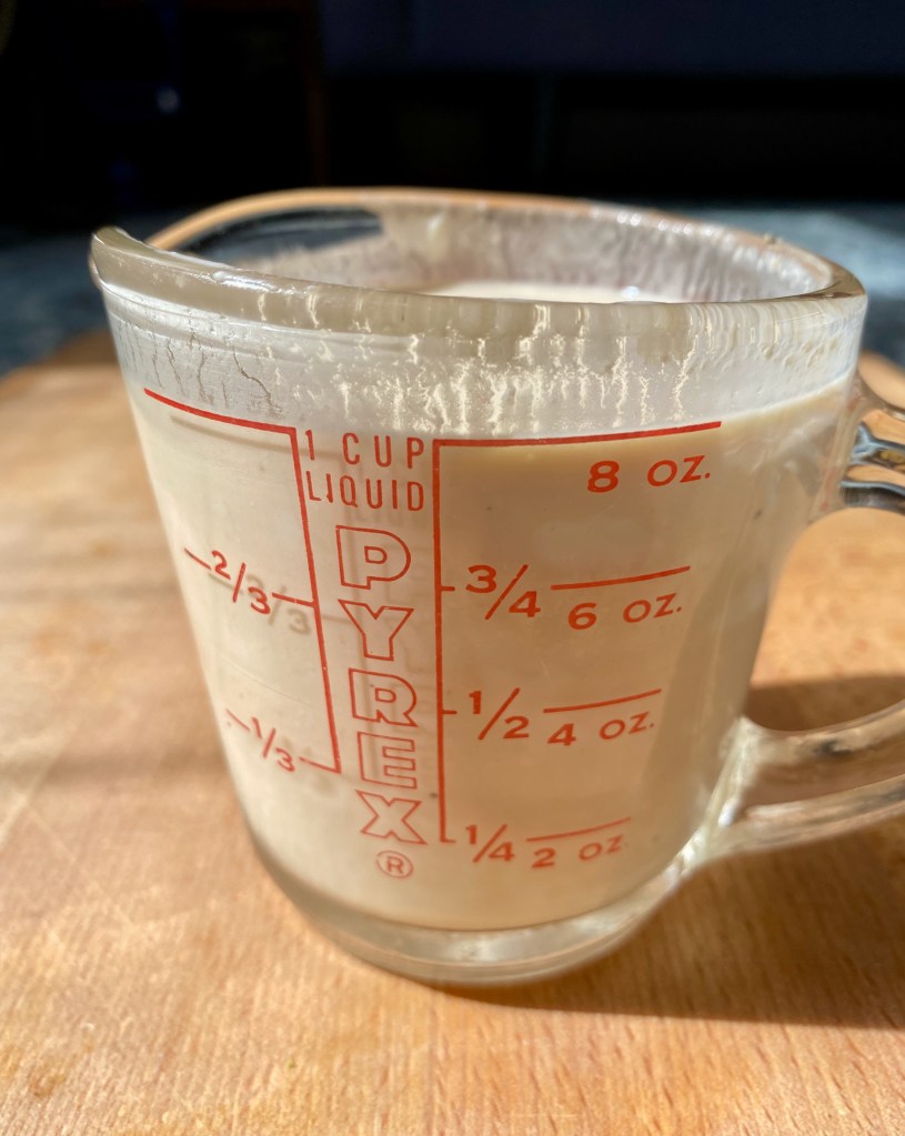 If you don’t have buttermilk, you can do what I do – measure 1 tablespoon of apple cider vinegar or lemon juice into a liquid measuring cup, add ½ cup of milk, cream or alternative milk, stir to combine, and let sit for 5 minutes. After five minutes, the mixture will thicken and curdle slightly. That means it worked! And we can use this in lieu of buttermilk.