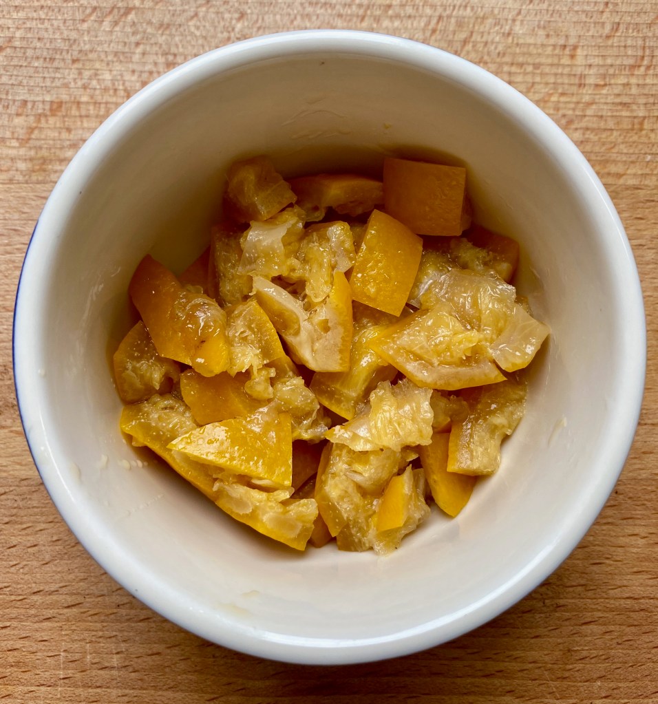 I was introduced to preserved lemons during my Ottolenghi challenge in 2019 (you can read more about “My year with Yotam” on the About Me page). He uses preserved lemons in a myriad of dishes such as harissa-marinated beef, chicken meatballs, and watermelon & feta salad. I also like to add preserved lemons to a pan of vegetables before roasting in the oven, or tossing uncooked into a grain salad.