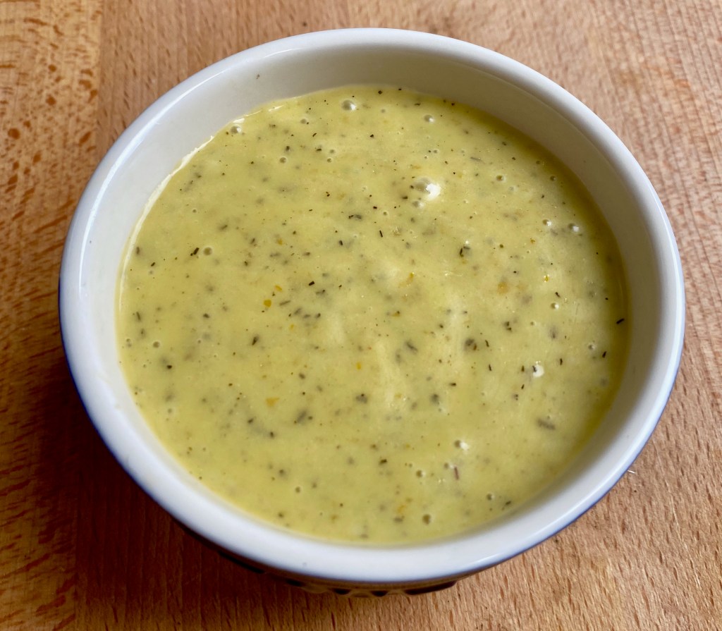 Make the dressing: If making buttermilk substitute, start the process. Add 1 tablespoon vinegar or lemon juice to a liquid measuring cup, and add ½ milk, cream or alternative milk. Stir and let sit for 5 minutes.